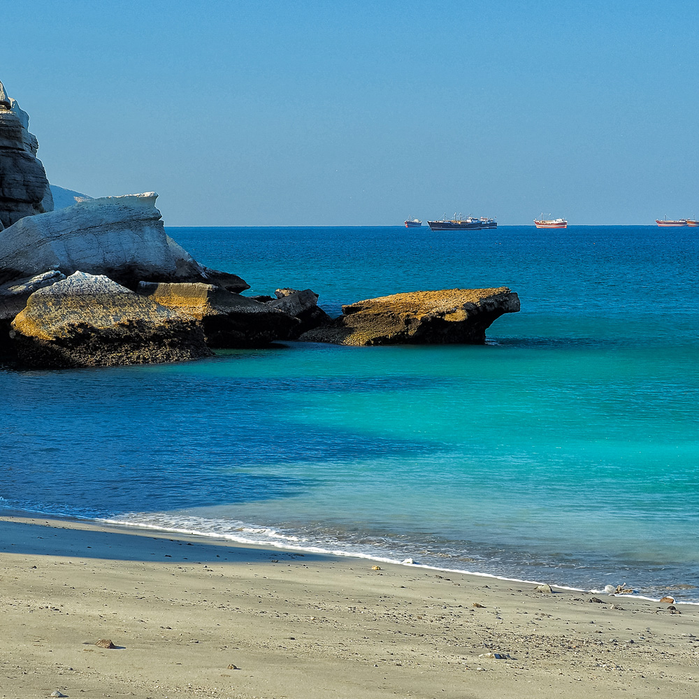 Muscat, capital of Oman, located on the Gulf of Oman coast. Situated on a cove surrounded by volcanic mountains, Ancient Forts and Emerald Beaches.